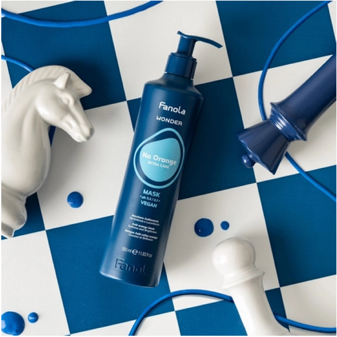 Fanola No Orange Mask - The Fanola No Orange Mask is the perfect solution for those grey hair streaks. Enriched with violet pigments, the No Orange Mask turns down the lightened or grey hair strands, making them less noticeable. The nourishing hair mask keeps your hair color vibrant and consistent. No Orange Hair Mask is ideal for blonde, bleached, grey, or streaked hair. The color mask neutralizes orange reflections due to pigment residue after oxidizing, lightening, and bleaching. A professional treatment, No Orange Purifying Hair Mask is formulated with violet pigments with intensive action. The hair gets a bright, cool, and even reflection. Color-correcting and Conditioning Hair MaskThe Fanola Hair Mask is formulated with special violet pigments, which neutralize undesired orangey reflections in the hair, leaving the hair shiny and silky. The violet pigment in the hair product is not harmful to your scalp, but instead doesn’t cause any side effects, even after frequent use. The acidic pH of the Fanola coloring hair mask seals the cuticles. The mask creates a protective violet film on the hair strand, which reflects and rejects orange reflection. The color-correcting hair mask is perfect for conditioning action. Rejuvenating Hair Mask The hair conditioning color mask is ideal for all hair types: grey, super-lightened, blonde, brunette, or natural hair. The rich violet pigments tone down orange hues on light blonde, streaked, or grey hair. The color protectant mask protects the color-treated or grey hair. The mask safeguards your mane against the harmful rays of the sun and pollution. The No Orange Hair Mask coats each hair strand, providing ultimate protection.